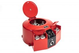 Each centrifuge has a built-in sample heater for added convenience, and is thermostatically controlled to hold samples at recommended temperatures during testing. The housing is made from solid-cast aluminum for maximum durability and corrosion resistance. The smooth-start variable speed rheostat controller reduces tube breakage and gives the operator precise motor control. Each machine is equipped with an analog timer that allows the operator to set the testing time from 1 to 15 minutes. The flip-style lid has a spring-loaded latch to remain closed during operation and features a lid access hole so that motor rpm can be checked while the lid is down.